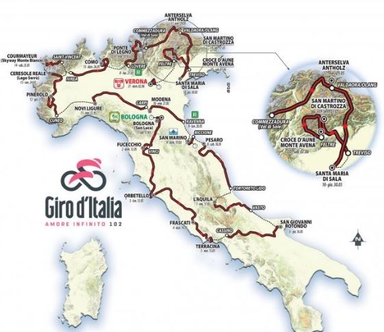 Pontedilegno-Tonale ospita l’arrivo della 16a tappa del Giro d’Italia 2019 il 28 maggio con un tappone alpino di 226 km e 5700 m di dislivello.